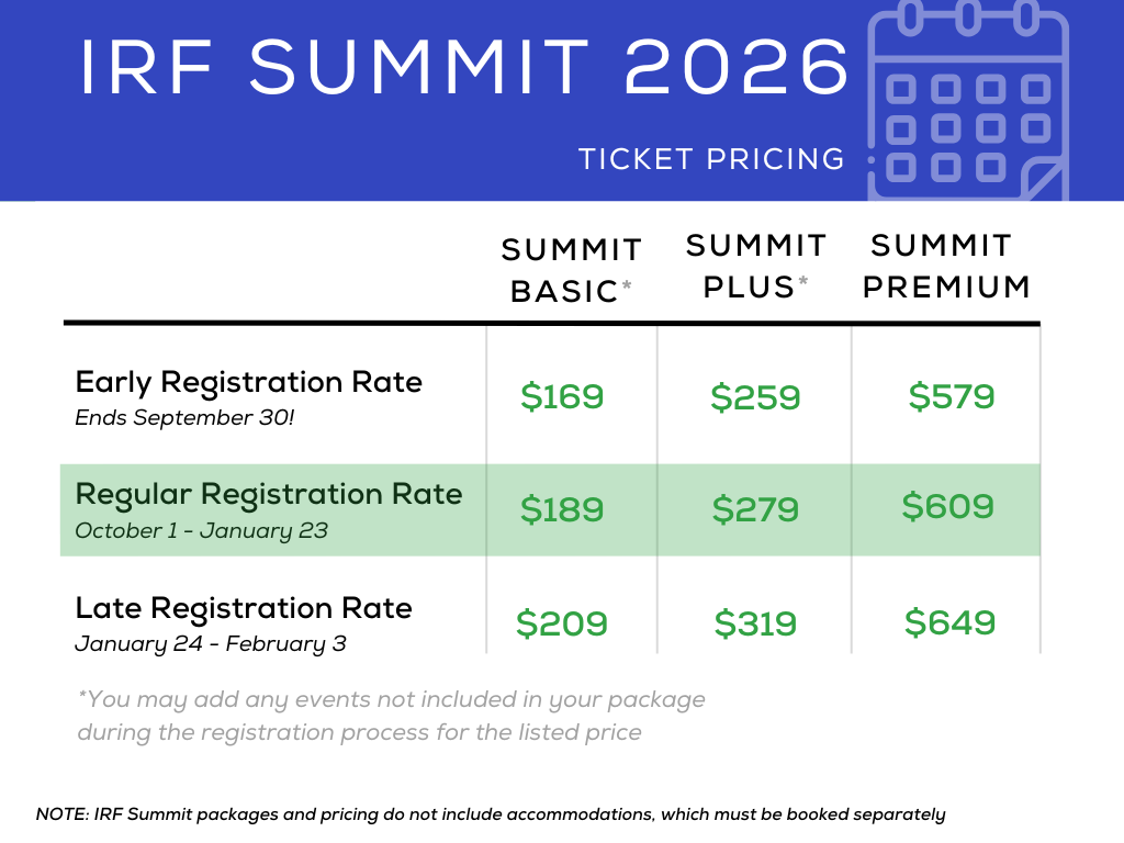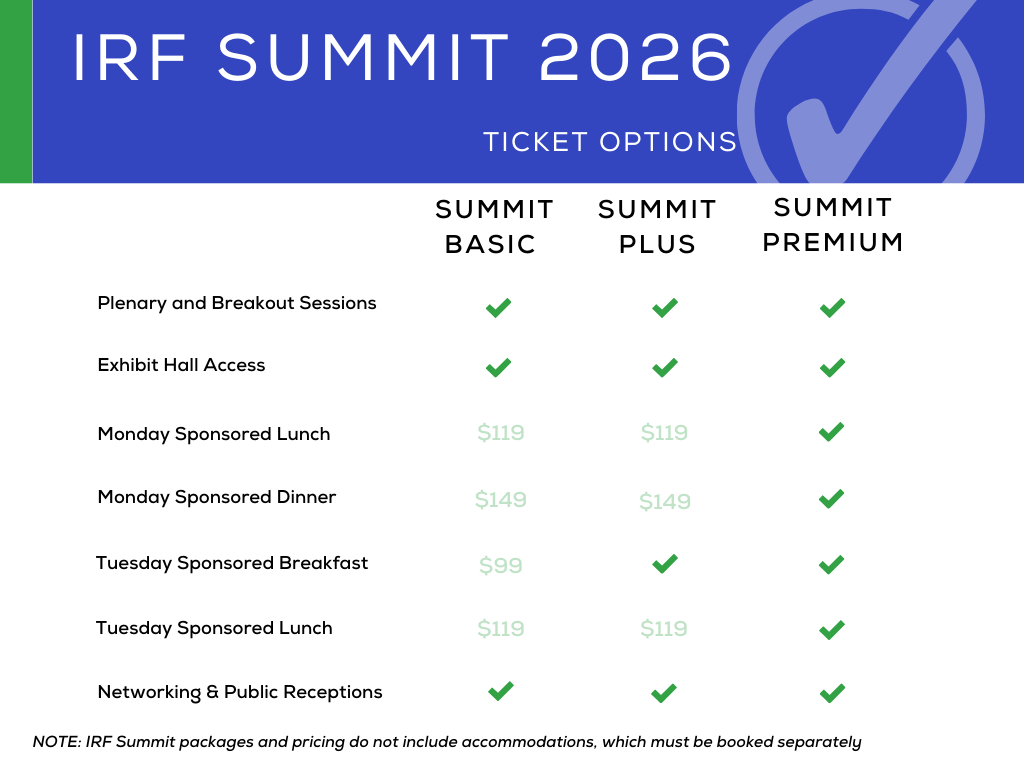 The IRF Summit 2026 will feature an exciting array of plenary and breakout events. Don’t miss out on this annual gathering and stay tuned for more details on the program to be announced soon.